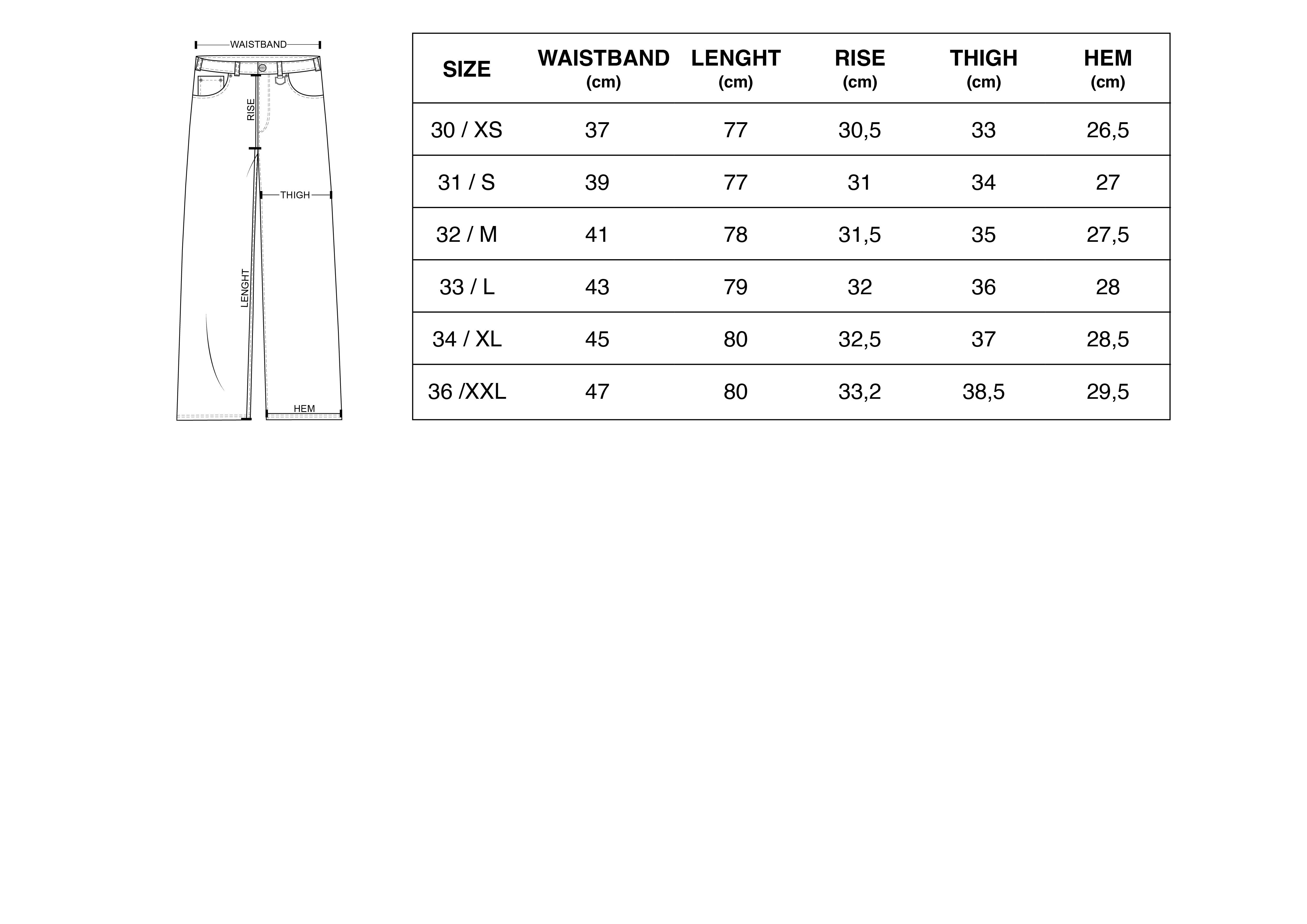 The model is 186 cm tall & wears a size 33.