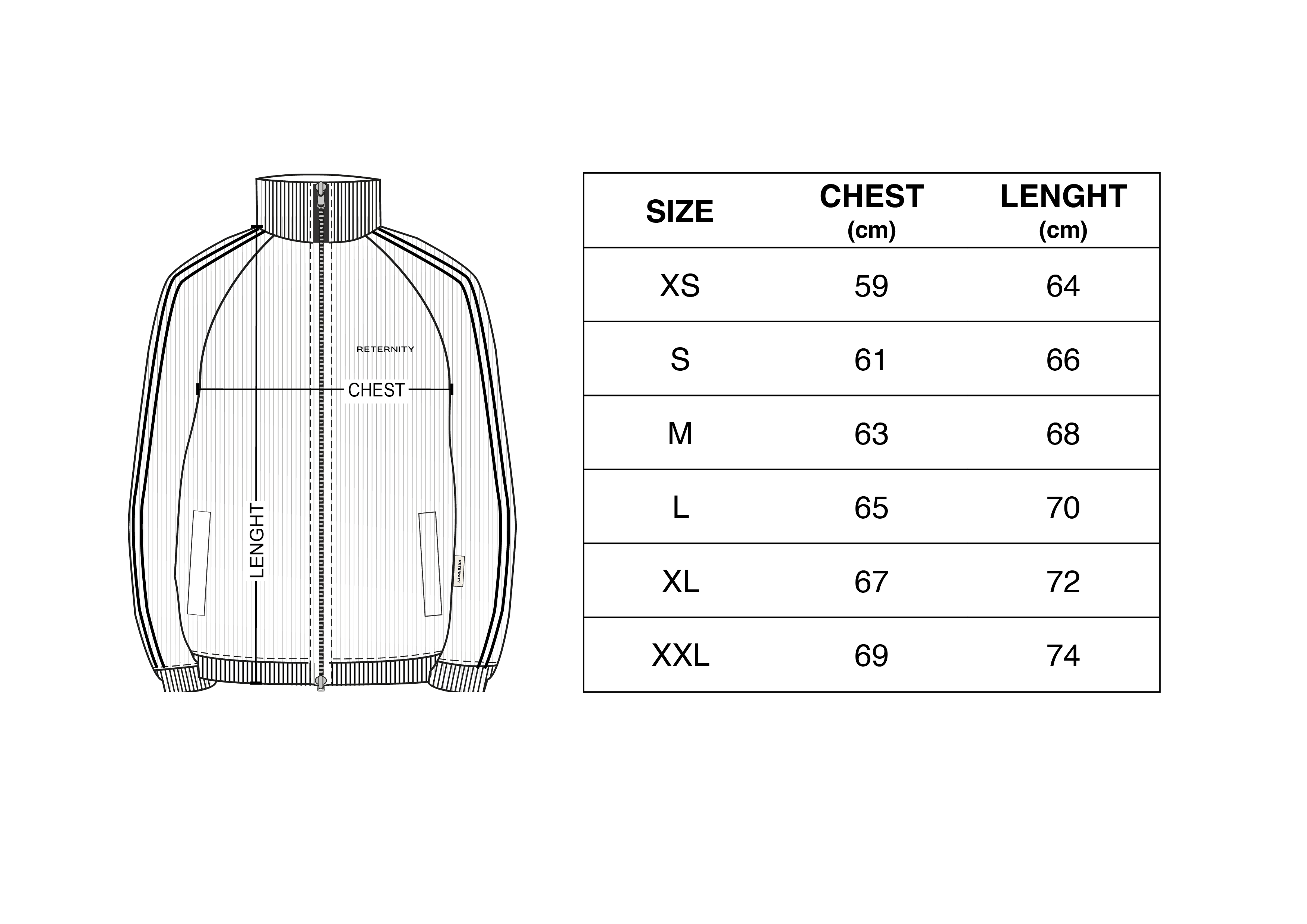 The STUDIO KNIT TRACK JACKET in cream is crafted from a soft rip-textured fabric, offering a cozy and premium feel. It features two contrasting knitted stripes along the sleeves and a small RETERNITY embroidery on the chest, adding a subtle signature detail to the relaxed silhouette.
